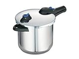 Cut down your cooking time with this 8-quart pressure cooker from Tramontina. This 18/10 stainless steel cooker saves you time and energy while helping to produce delicious meat, bean, and rice dishes with ease. It's constructed with a steel, impact-bonded, three-layer encapsulated base and an aluminum center that promotes even heat transfer. Bakelite handles with two safety relief pressure spots..