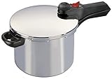 Manttra Quick & Easy pressure cooker is made of mirror polished 18/10 stainless steel, with the capacity of 5.5 liters or 6 quarts. Manttra pressure cooker's has special euro 3 ply clad base for uniform heat distribution. New uni-directional pressure regulator for safe release of steam away from you. One touch quick steam release. Comprehensive 4 safety features.